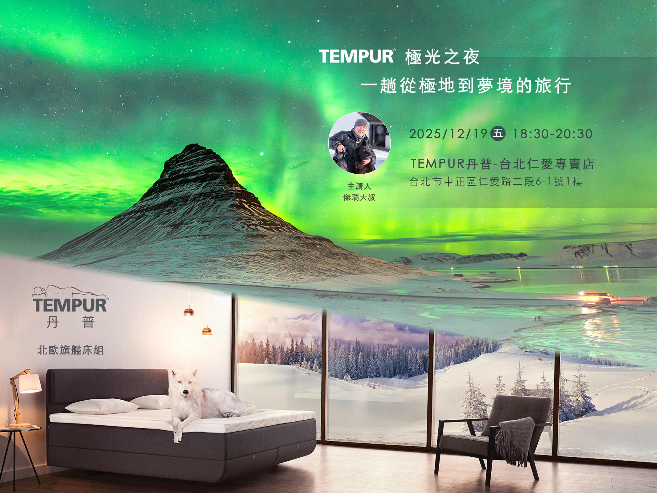 【冰島極光講座-台北場】TEMPUR 極光之夜一趟從極地到夢境的旅行 2025/12/19(五) 18:30-20:30