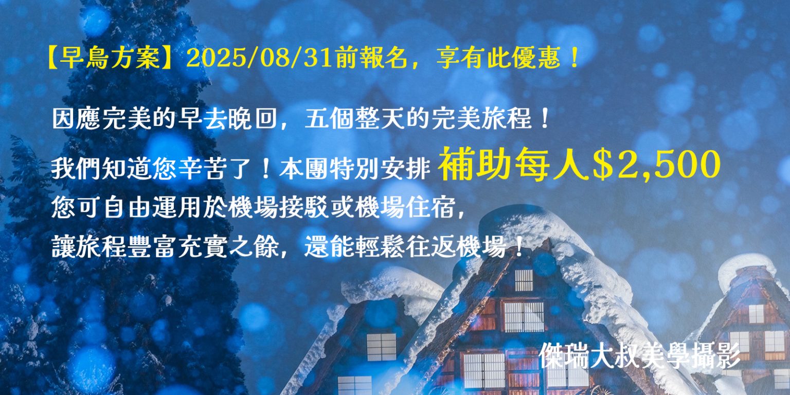 合掌村早鳥優惠