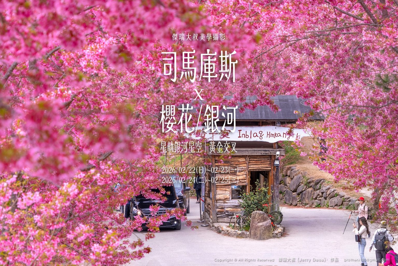 New!第二梯已成團!【2026司馬庫斯絕美春櫻與銀河星空的完美相會團】突破管制入住!兩梯次出發-傑瑞大叔美學攝影 2026/02/22(日)~02/23(一) 、2026/02/24(二)~02/25(三) 新竹高鐵站搭乘賓士九人座,精緻小團!