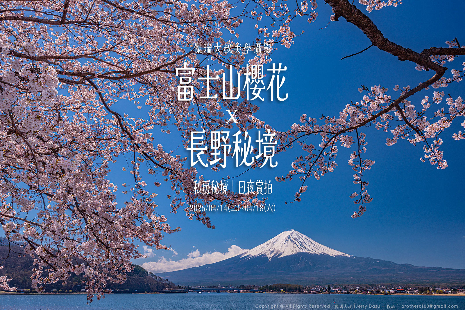 【已額滿出團!】2025日本櫻花大景與秘境對決【日夜賞拍壯闊富士山X秘境長野-傑瑞大叔日本櫻花美學攝影私房秘境深度五日團 】2025/04/13(日)-04/17(四)